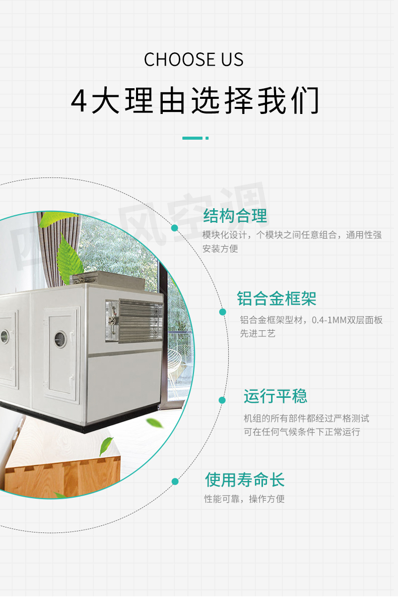 靖江市四季風空調設備有限公司——組合式空調機組提供獨特的組合設計,混合段、過濾段、表冷段、加熱段、加濕段、消身段、風機段、噴淋段、熱回收段、輪轉出時段等功能段獨立制造,再依據不同的使用要求加以組合,從一般性的舒適性空調用途到要求嚴格的醫院手術室及集成電路無塵室等潔凈工藝性空調均可滿足要求。機組的高度和寬度可以靈活選擇以適應現場條件對機組外形尺寸的需要。可以散件發運至工地,再在現場安裝組合。